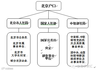 一般而言,应届毕业生可通过以下三条路经解决北京户口,分别是北京市人社局、国家人社部、中共中央组织部,其对应的单位性质也不相同。