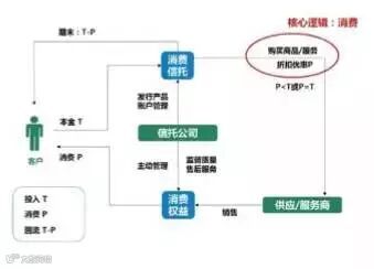 消费型消费信托,核心业务逻辑为消费,客户向消费信托投入资金,然后获得相应的消费权益。