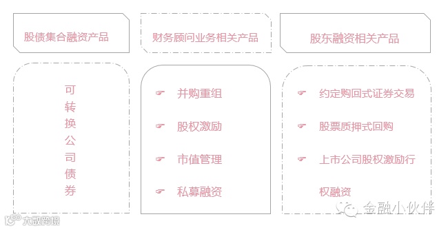 投行具体有哪些业务呢?为了给大家清晰的展示,IC把珍藏的压箱底资料都翻出来啦~下面是大部分情况下投行的各个产品线,是不是觉得很多名词听起来很熟悉呢?