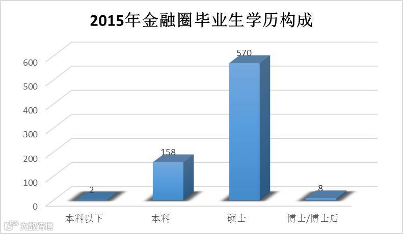 从本次调查中可以看出,如图2-1-2本科以下的近乎没有,七百多中只有一位。本科生占比21.41%,硕士占77.24%,博士占1.08%,总共8位参与了投票。一枝独秀的硕士比例,这调查结果证明也证实了金融圈对于学历的要求已水涨船高,内资金融机构的对于学历要求基本都是硕士的水平。现如今,金融行业核心岗位(券商、基金等机构的核心岗位),研究生基本都成为了一个起步要求。真正愿意招收本科生的只有一些后台部门、或者一些对专业要求比较低的销售岗。因为研究生数量激增,而且又相对更加完备的知识储备、实习经历、成熟心智等因素,都是用人单位倾向招收研究生的一个因素。然则也并非本科生注定在金融业中难以生存,关于读研深造还是直接就业的问题,另可参考小金窝中的讨论帖子,有着一些探讨可供参考:《想从事金融行业,是本科毕业后直接就业,还是应该继续读研?》链接为http://www.xiaojinwo.com/thread-2022-1-1.html