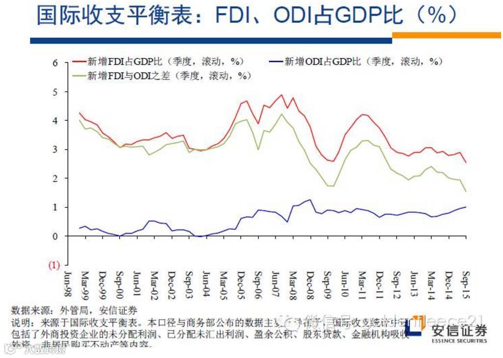 中国经常账户盈余已经大体平衡,以商务部口径观察的FDI和ODI也基本持平,目前国际收支基础盈余占GDP比重处于历史最低点附近。考虑到美元可能仍处于强势周期,中美利差可能继续下降,资本流出和人民币贬值的压力可能持续存在。