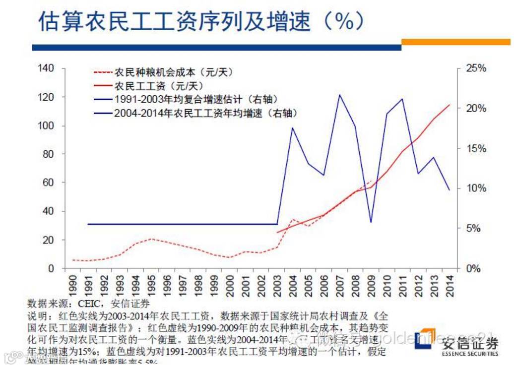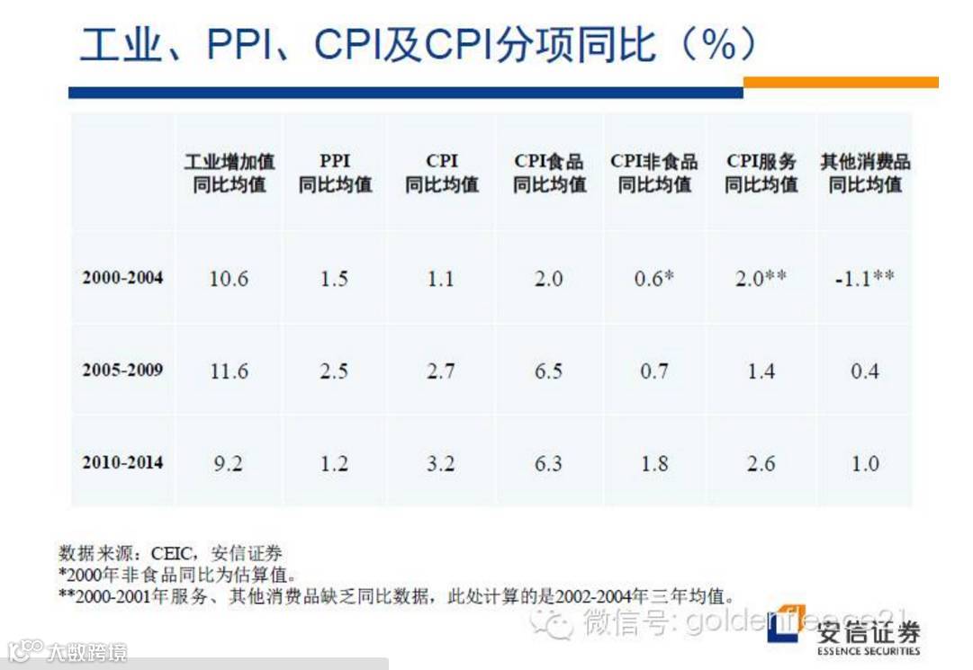 未来5年,我们认为通货膨胀的中枢水平会从此前3.2%下降到1%。主要考虑农民工工资涨速将大幅放缓,国际能源和粮食市场转入明显熊市,国内粮食市场开始进入长期的调整格局,合并使得一般消费物价的涨速将大幅下降。