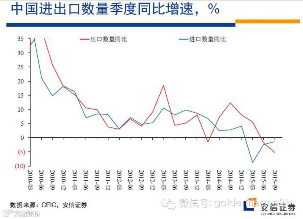 2015年,公共财政开支回升,一定程度上扭转了2014年下半年财政支出下滑的局面,但并没有扭转经济的下行势头。一个重要的原因是出口的走弱,并且在中短期来看,出口的疲弱可能不会改变。另一个原因是房地产去库存与投资的下滑。在库存压力仍然较大的背景下,明年新开工可能继续负增长。