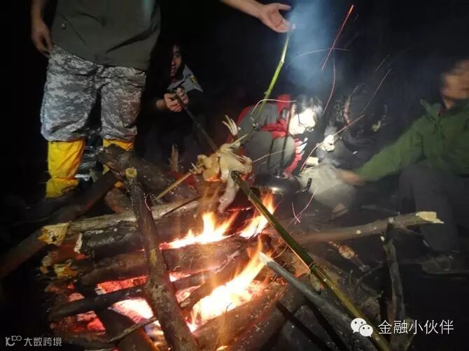 15:00 到达营地,大伙开始烧饭,各路大厨显身手的时候到了,一番折腾后我们都期待尝尝山里做的饭菜呢。吃完饭时间还早,慢慢长夜,必须嗨起来,玩游戏,数星星,聊人生,听河水叮叮咚咚的声音,困了就钻帐篷做起梦来。