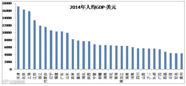 图3 地区发展不平衡,9个省市人均GDP过1万美元