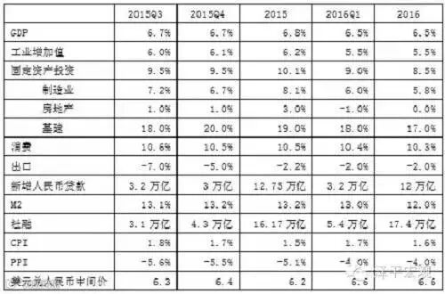 表1 中国宏观经济主要指标预测(2015Q3-2016Q4)