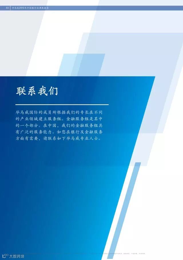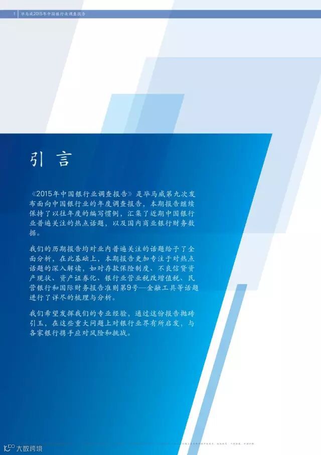 导读:《2015年中国银行业调查报告》 图片较多,建议wifi环境下观看,土豪随意。原文来自于:毕马威中