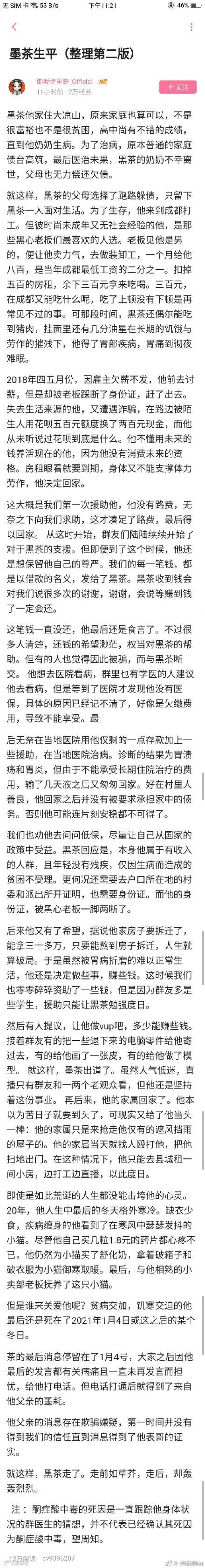 墨茶生前只有两百多个粉丝,甚至一直到去年7月才有100个粉丝。