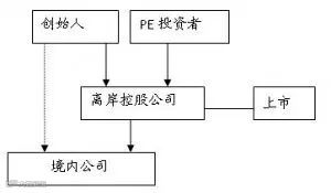 而在上市之前,以上市为目标,以红筹模式的形式实施的私募股权投资,是很常见的PE投资架构。具体如下图所示: