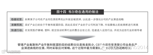 图十四是韦尔奇在通用时的做法,告诉我们在集聚、平衡和联盟阶段要做一名精明的棋手。