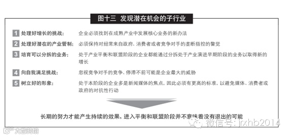 在产业平衡和联盟的整合阶段,在于发现潜在机会或能增加价值的子行业(如图十三)。
