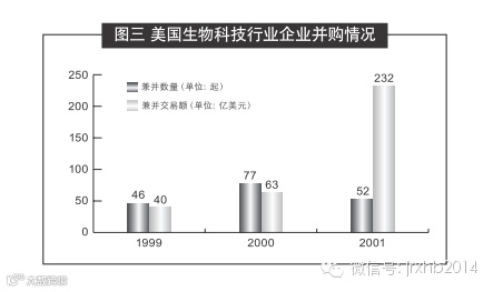 而对于初创阶段的并购,目的是在技术和财务上达临界规模。例如,图三为美国生物科技行业并购情况。
