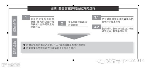 那么,在收购到心仪的对象后,整合者应该用扩大规模控制竞争,提高行业准入壁垒改变游戏规则(如图四)。