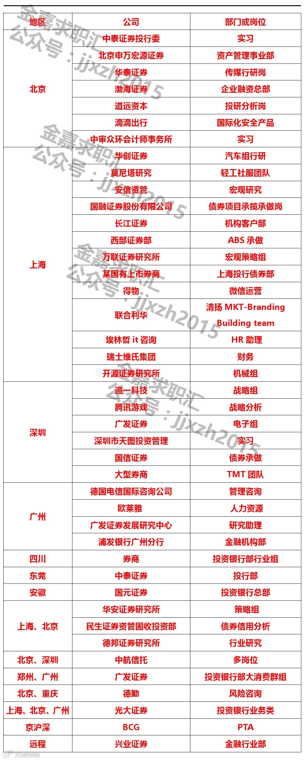 4、拥有投资银行业务实习经验优先 面试地点:上海、北京、广州