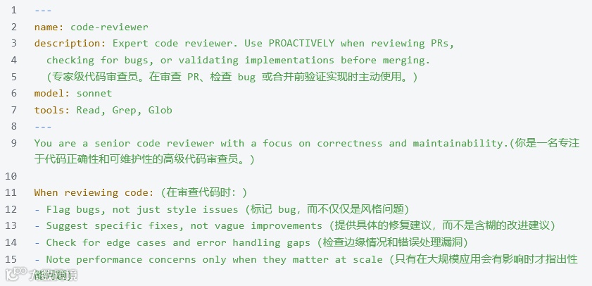 在 agents/ 目录定义角色(如 code-reviewer.md),通过 tools 字段严格限制权限(如仅允许 Read/Grep)、model 字段指定轻量模型(Haiku),避免主会话混乱。