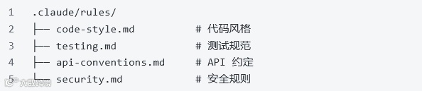 拆解大型 CLAUDE.md 至 rules/ 目录下的细分文件(如 api-conventions.md)。支持路径限定规则——通过YAML前言限制生效范围(例如仅作用于 src/api/ 路径)。