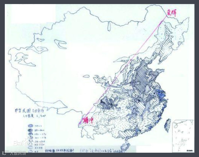 地理上有一条很著名的线叫胡焕庸线。它是一条连接起黑龙江黑河和云南腾冲的一条直线,以地理学家胡焕庸的名字命名,是20世纪中国地理最重要发现之一。