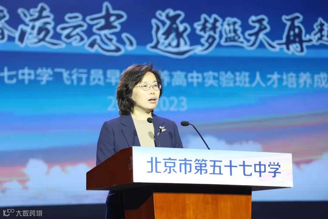 北京市第五十七中学校长刘晓昶在致辞开篇介绍:“早在2003年,在国家体育总局、教委及空军的大力支持下,学校建立了第一个模拟飞行实验室,开设了模拟飞行课程。2010年,北京市教委领导李奕考察学校的多样化校本课程建设,对学校的模拟飞行课程给予了极大的关注和高度的评价,并且希望学校的航空教育能够不断提升,有所突破,办出特色。于是,2012年在市区教委的支持下,经北京市教委批准,成立了北京市的第一个飞行员早期培养高中实验班。”