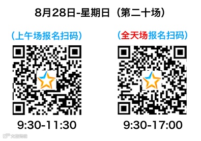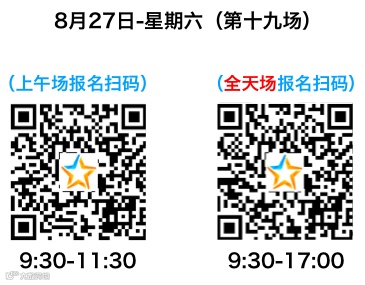 时间:8月27/28日,周六/周日-上午(9:30-11:30);下午(13:00-17:00)