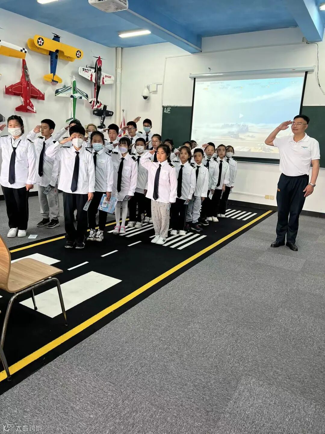 教会大家航空飞行员的标准敬礼姿势,向所有家长、老师敬礼