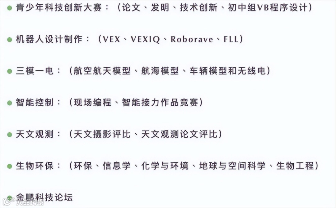 科技特长生主要七大招生类目