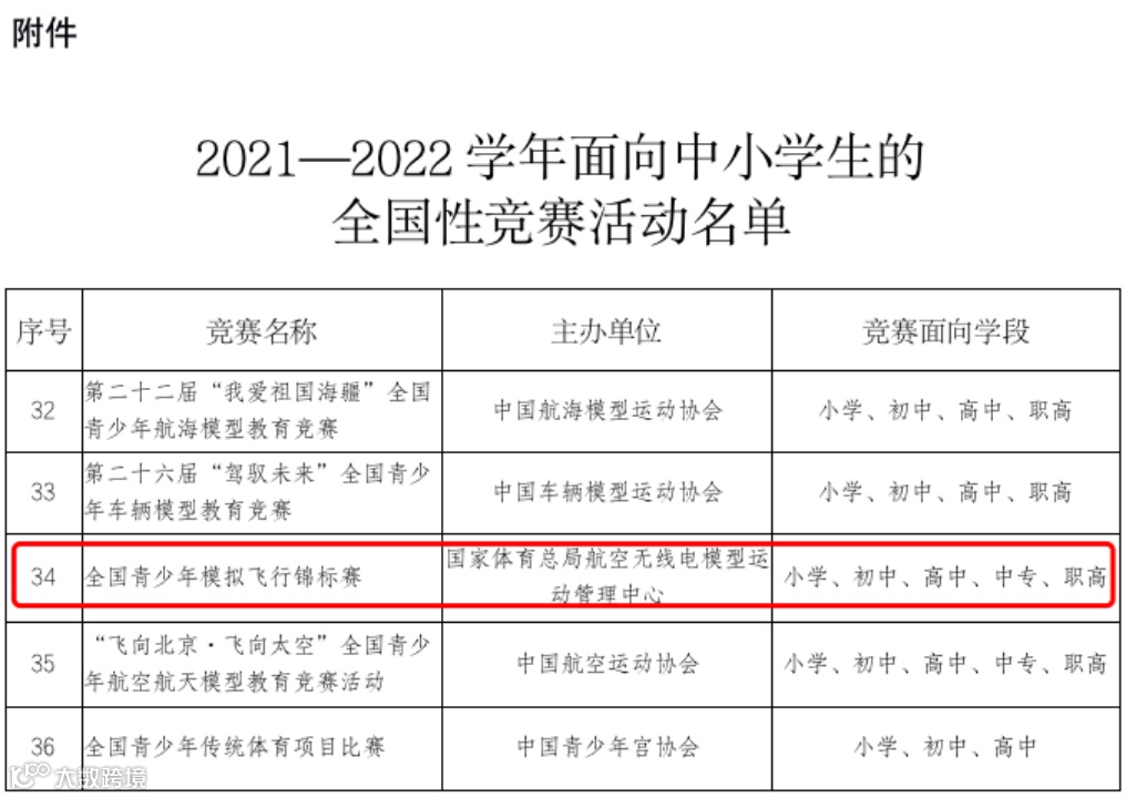 同时教育部每年公布的面向6-18岁学生的竞赛活动:白名单赛事!