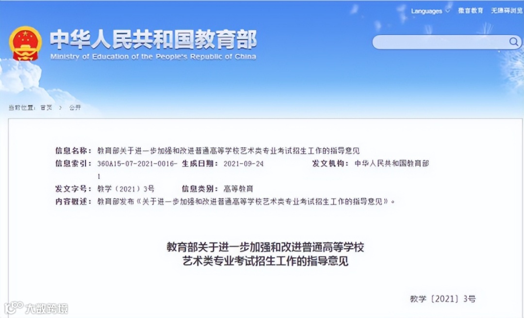 2021年,教育部印发了《关于进一步加强和改进普通高等学校艺术类专业考试招生工作的指导意见》,在其中规范了艺术类专业的招生政策,包括艺术类考试和高水平艺术团考试,其中明确自2024年起,高校高水平艺术团不再从高校招生环节选拔,由相关高校从在校生中遴选培养。这意味着艺考生的升学之路,迎来重大变革。