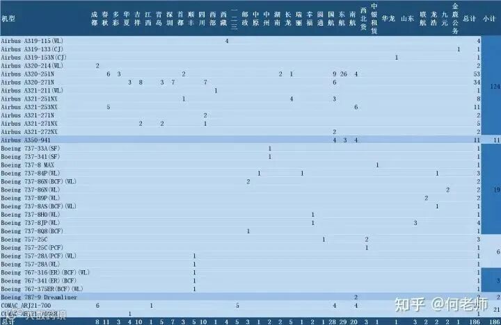 A320系列引进最多,ARJ21引进21架