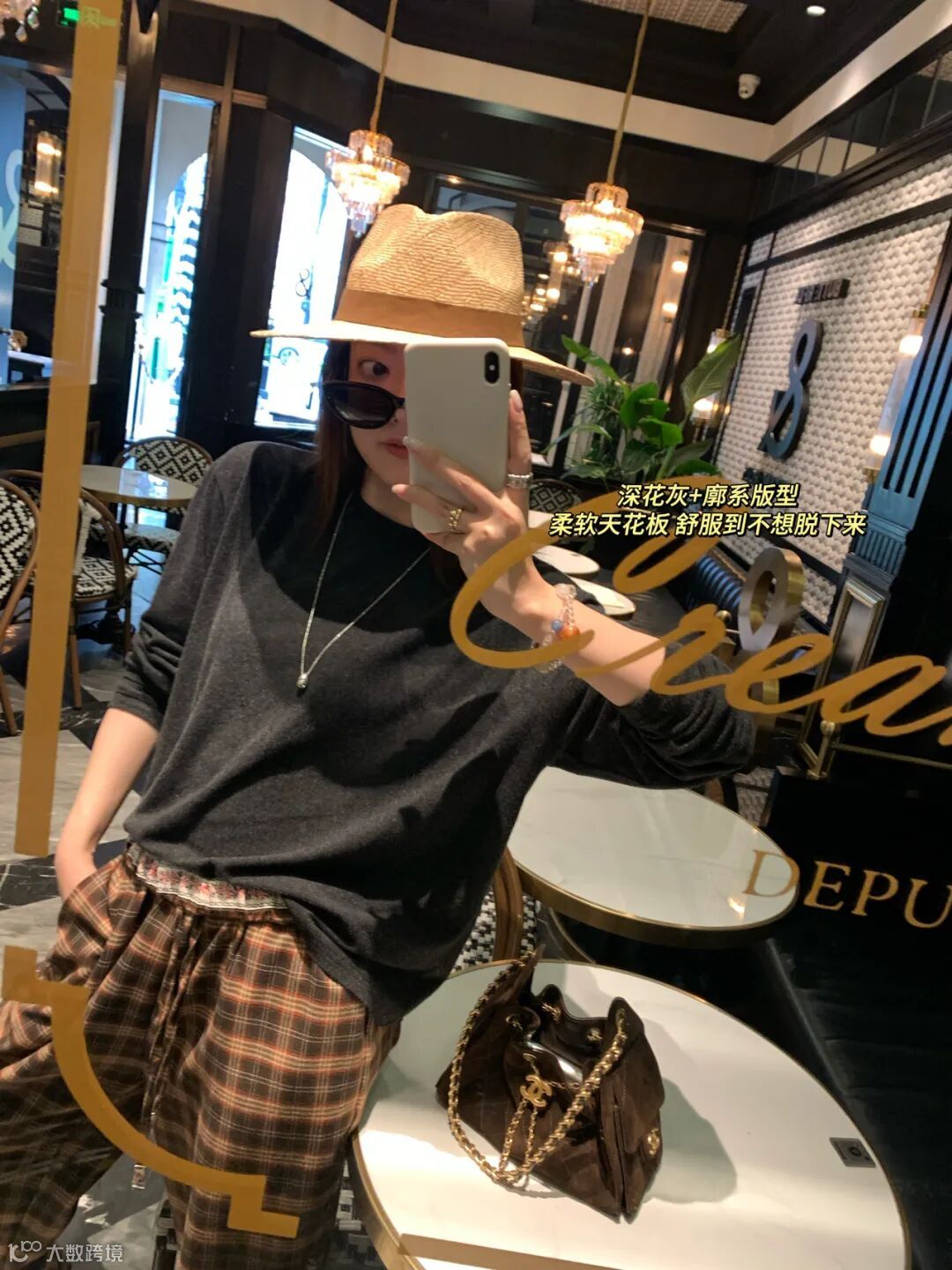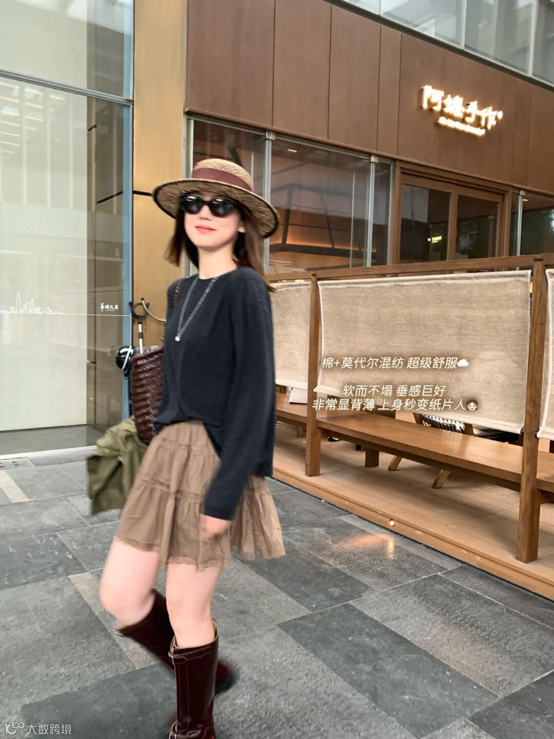版型是宽松的,但不是那种松垮没型;面料有垂感,但又不会软塌塌贴在身上;圆领设计干净利落,不挑脸型不挑人。