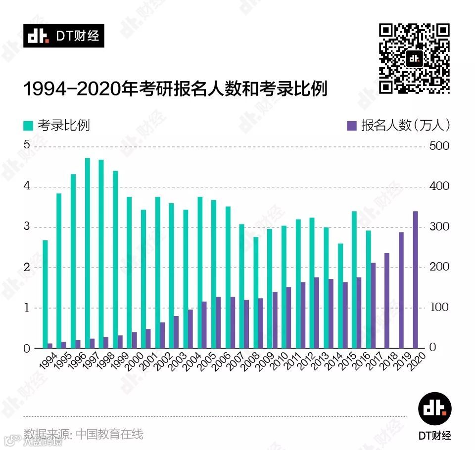 在考研这场大战中,有人一战上岸,学术生涯再延长两三年;有人初入职场坎坎坷坷,边上班边复习,想通过考研寻求职业生涯的转机;有人读完三年研究生后就业,发现本科同学成了上司。研究生学历能给职业生涯带来多大裨益?DT君曾经用数据详析过这个问题。2020年考研初试成绩陆续公布,今天,我们再为同学们来重温一下这段数据。