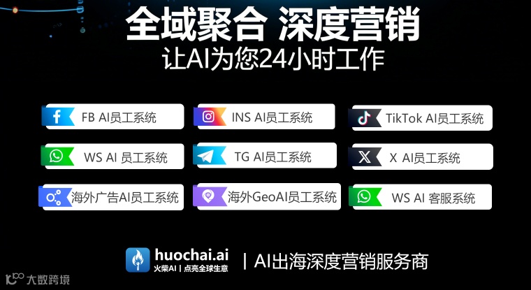 火柴 AI 全平台营销系统,本质上就是为了解决跨境多平台矩阵的运营痛点:✅一个后台管所有平台,告别切换焦虑;✅AI 自动截流,每天获取上千精准客户;✅AI 智能优化广告,让投放更高效;✅AI24 小时客服,所有询盘统一回复,睡觉也能接订单。
