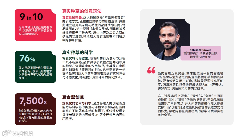 报告中提到,品牌需要“在不削弱真实感的前提下,系统性获得支撑增长所需的内容规模与生产效率”。这意味着,我们需要将精力更多集中在创意策略上,而将重复性的触达工作交给工具。