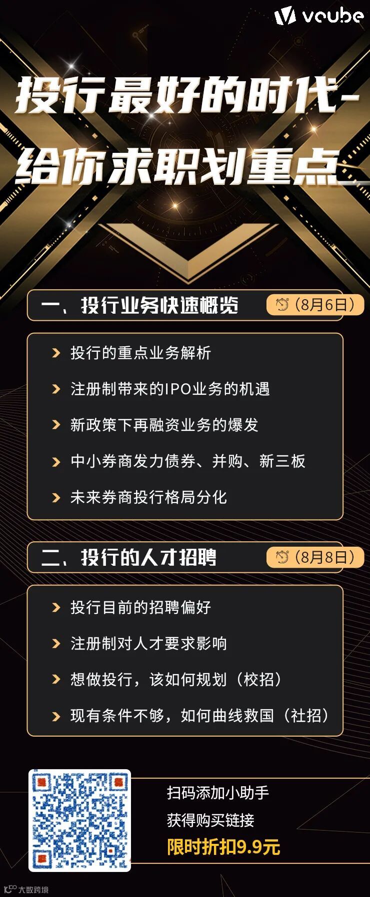 所以,秋招想要进投行的小伙伴,其实更需要关注好投行的业务和投行的人才招聘