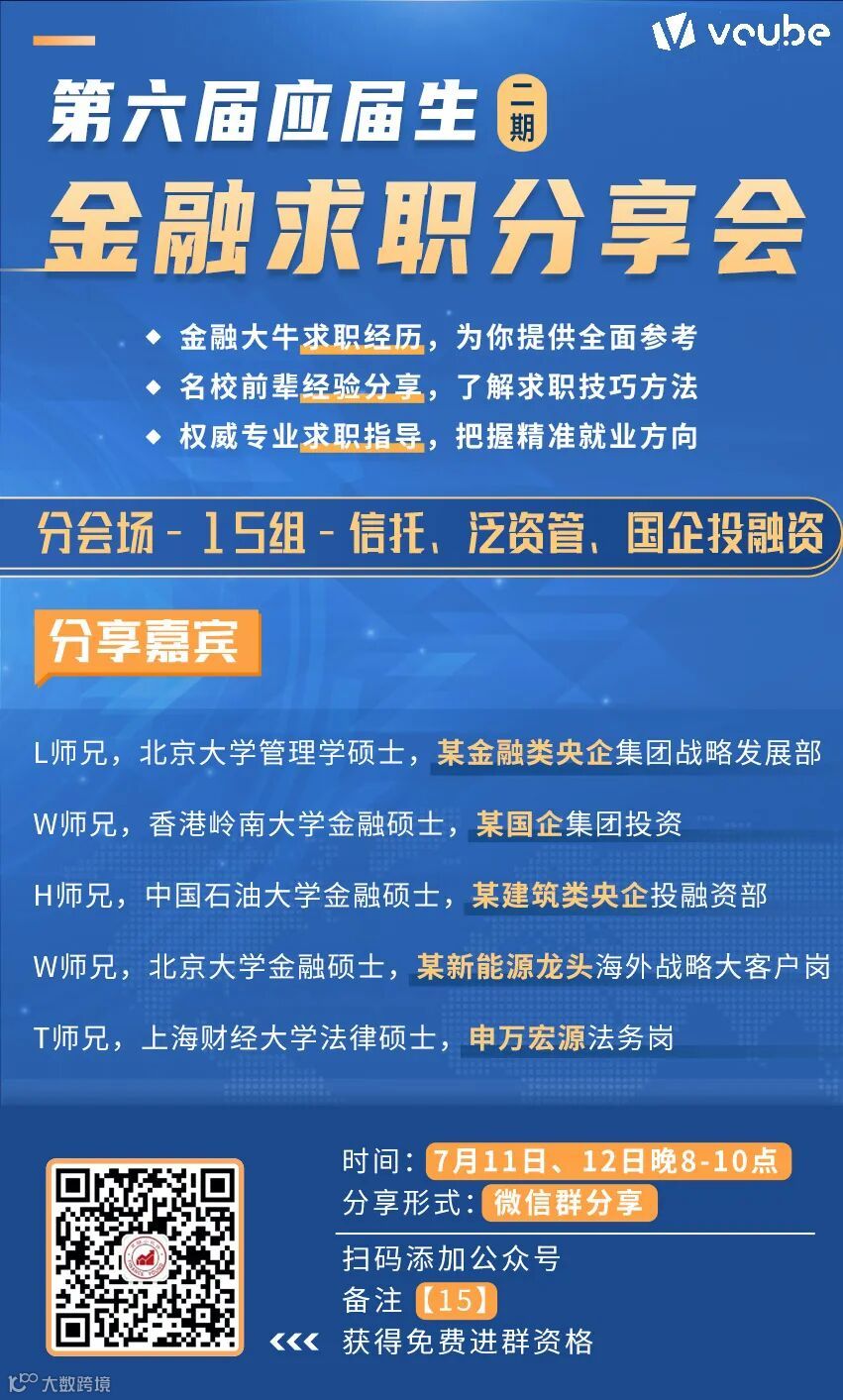 导读:第六届(二期)应届生金融求职分享会分会场——信托、泛资管、国企投融资分组来啦!