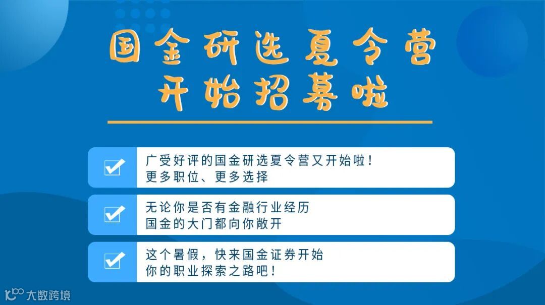该计划为非应届的在校学生(2021年及以后毕业)量身打造,实习职位几乎涵盖国金证券所有业务部门,包括证券研究、资产管理、投资银行、投资咨询等诸多领域。