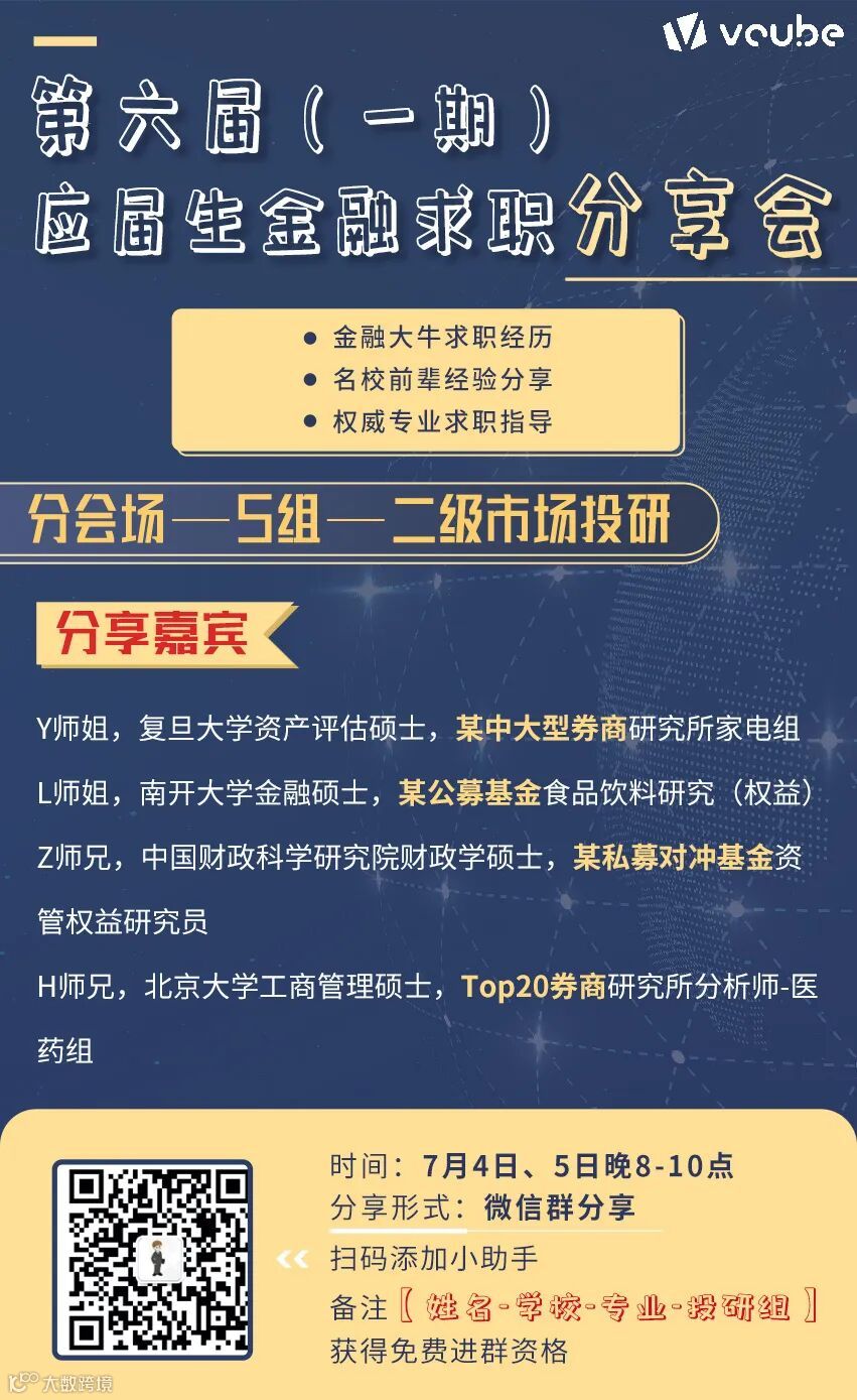 导读:第六届(一期)应届生金融求职分享会分会场——二级市场投研来啦!