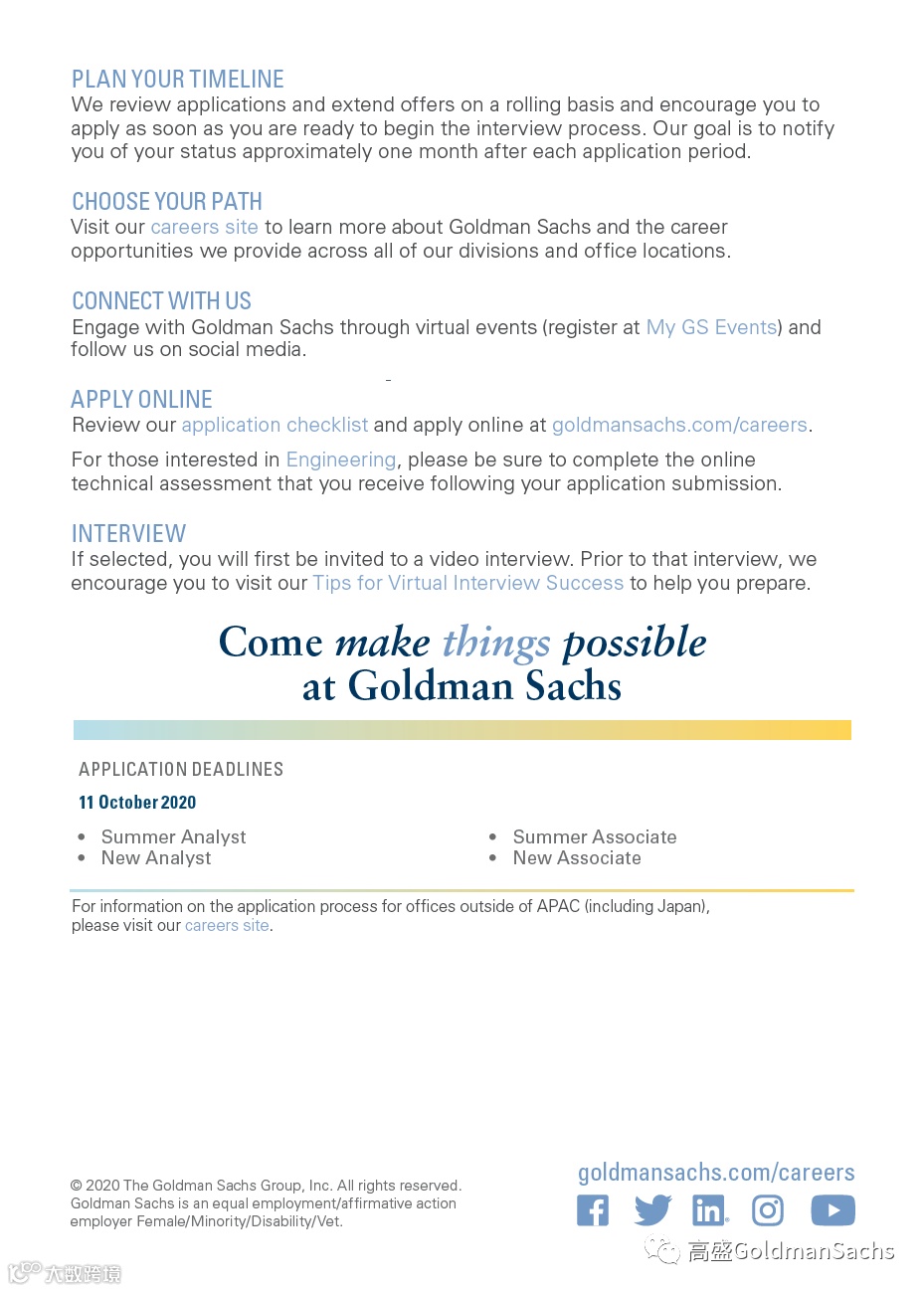 高盛2021年暑期实习及全职项目校招