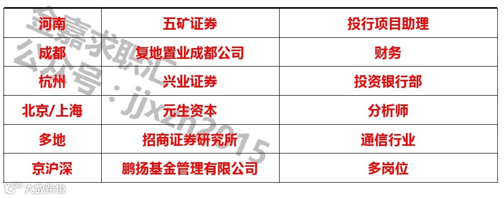 如需发布招聘信息直接发送至金融小伙伴(jrxhb2014)后台哦,也可以添加工作人员微信号(jrxbk2019)联系发布,请备注“姓名+单位+发布招聘”