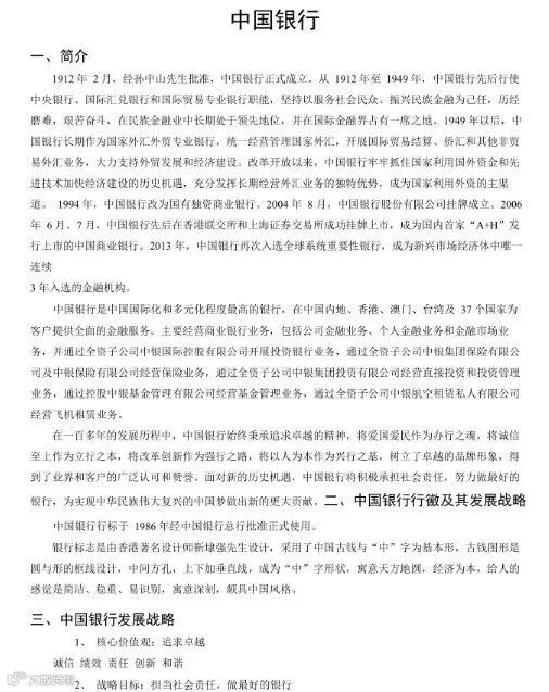 中国银行笔试答案和面试资料!