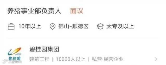 2018年5月,碧桂园曾在微信公众号招聘“养猪事业部负责人”。