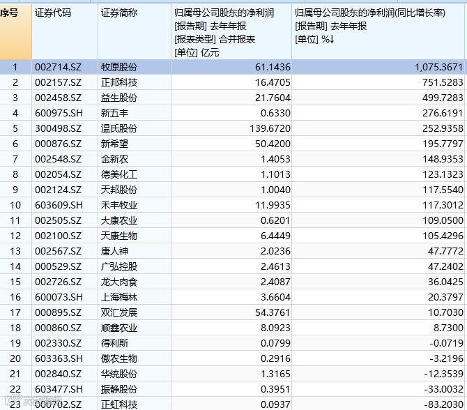 Wind数据显示,2019年,24家上市猪企中,18家净利都在增长,没有一家亏损。