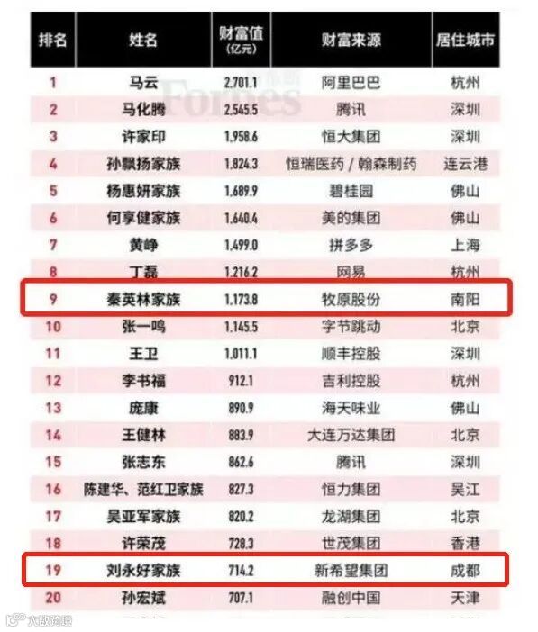 而在2019年福布斯中国富豪榜上,也出现了多位百亿身价养猪发家的大佬。