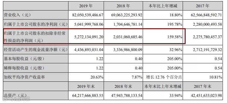 再说回养猪大户“新希望”,从2019年年报来看,2019年营收820.51亿元,同比增长18.8%;净利润50.42亿元,同比增长195.78%;每股收益1.22元。