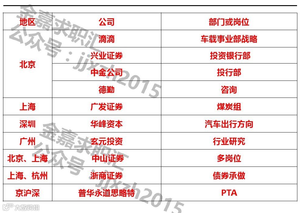 5、金融背景候选人有投行、PEVC等实习经验者优先考虑