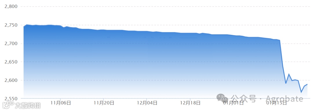 近三个月(20231025-20240125)全国玉米、豆粕价格走势(根据各原料价格平台,采集样本价格后,计算均价),供参考。