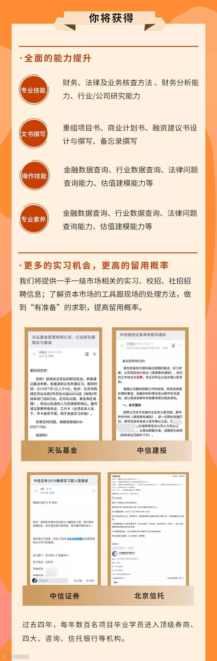 系统性提升学员的符合一级市场要求具备的行业/ 公司研究、财务/ 法律/业务核查、文书撰写、项目路演等实操能力,培养投行、券商、信托、