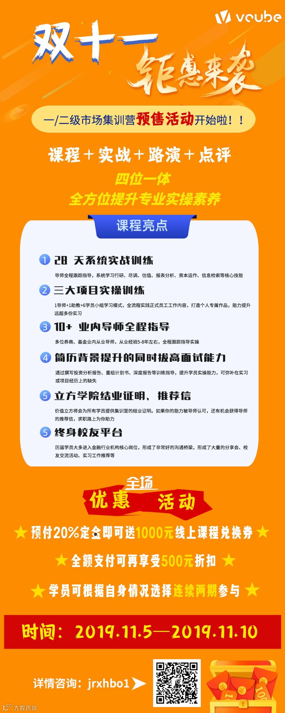 【双11钜惠】投行/pe/vc 一级市场集训营预售火热进行中