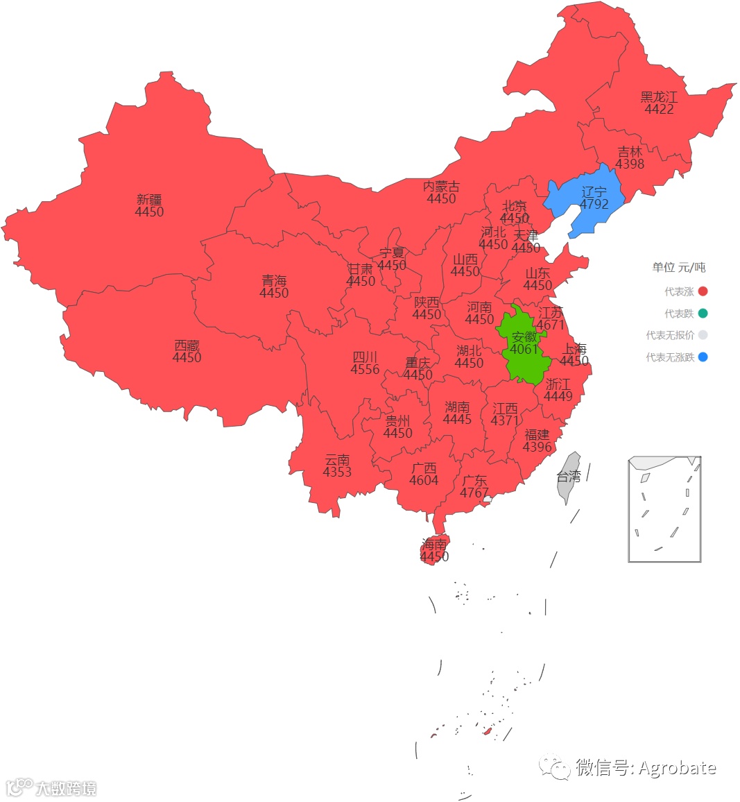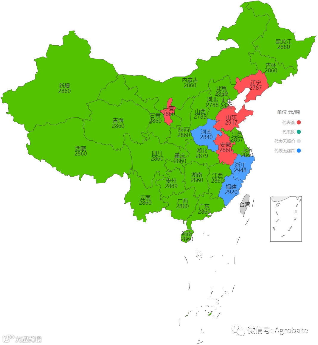 以省为单位,监测价格变动,指导玉米豆粕大宗原料采购决策。价格信息来自:饲料行业信息网。报价截止时间11:30,统计时间不同会造成当日价格有小幅差异。