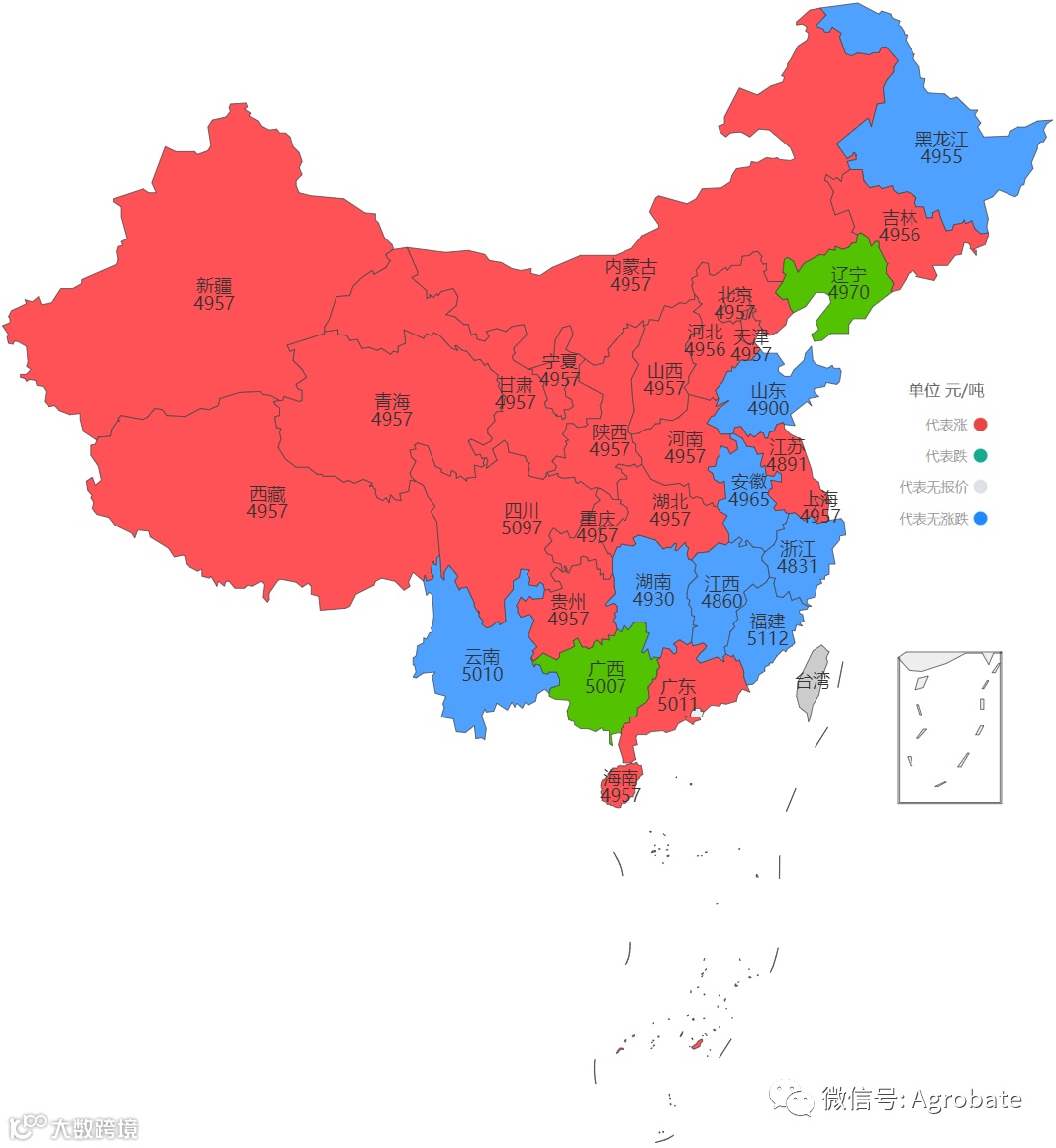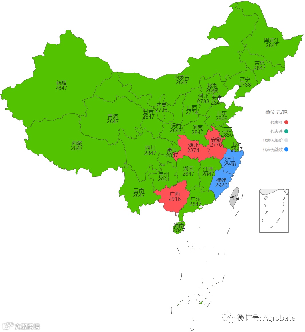 以行政省为区划,玉米、豆粕大宗原料每日采购均价。信息来自:中国饲料行业信息网、我的钢铁(mysteel)、百度爱采购等。报价截止时间15:30,统计时间不同会造成当日价格有小幅差异。