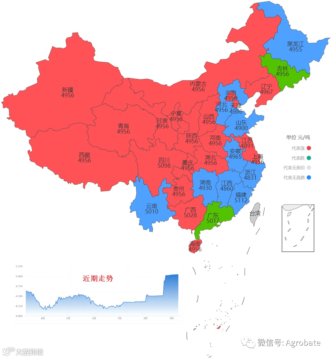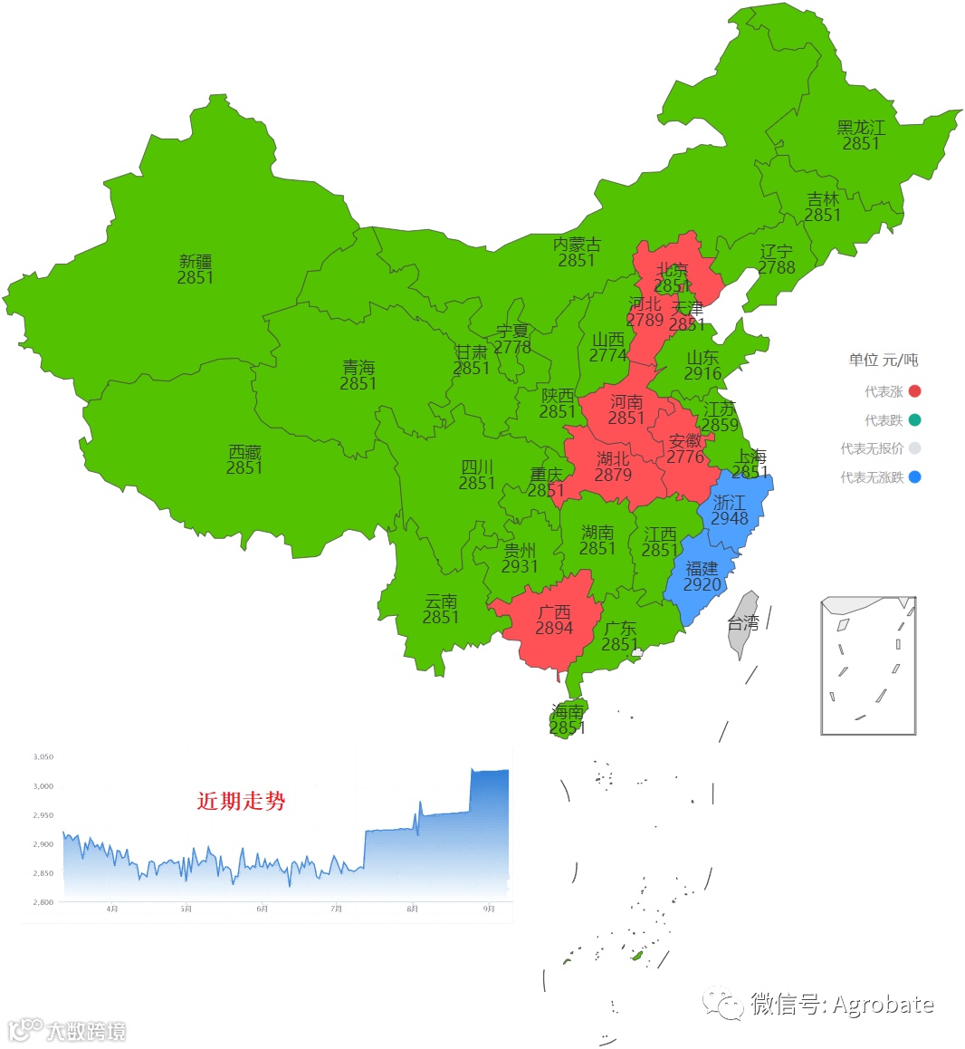 以行政省为区划,玉米豆粕大宗原料每日采购均价。信息来自:中国饲料行业信息网、我的钢铁(mysteel)、百度爱采购等。报价截止时间11:30,统计时间不同会造成当日价格有小幅差异。
